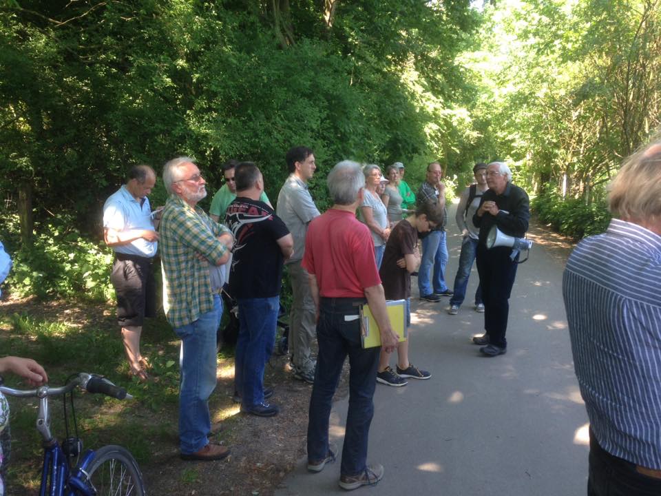 Beim "Grünen Stadtspaziergang" erklärte Dr. Wolfram Kneib von der LEO-Stiftung (LEbenswertes Ostufer), welche Potentiale der Grüngürtel für alternative, nachhaltige Wohnformen bieten könnte. Der baupolitische Sprecher Nord-West der Grünen Ratsfraktion, Arne Langniss, und der Architekt Niels Ahsbahs lieferten zusätzliche fachliche Expertise.