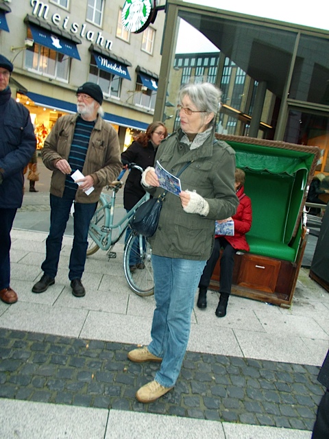 Das trübe Wetter am Sonnabend machte die mangelnde Qualität des leerstehenden C&A Gebäudes, der Markthalle und der über dem Platz schwebenden Spielbank mit dem heruntergekommenen Parkhaus mehr als deutlich. Hier seien Möglichkeiten der Qualitätsverbesserung nötig und möglich. So werde seitens der Stadt seit einiger Zeit intensive Gespräche zur Aufwertung des Areals über Wettbewerbe und Gutachten geführt.