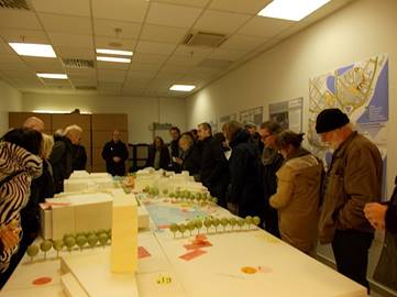Die Begehung endete im Infozentrum der Stadt Kiel am Wall. Dort wurden wesentliche Punkte des Stadtspazierganges an dem Arbeitsmodell intensiv und teilweise kontrovers diskutiert. Hier wurden auch Anregungen und Kritikpunkte der Teilnehmer gesammelt. Ein zum Abschluss hergestelltes Meinungsbild ergab eine große Mehrheit für das vorgelegte Grundkonzept „Kleiner Kiel-Kanal“.